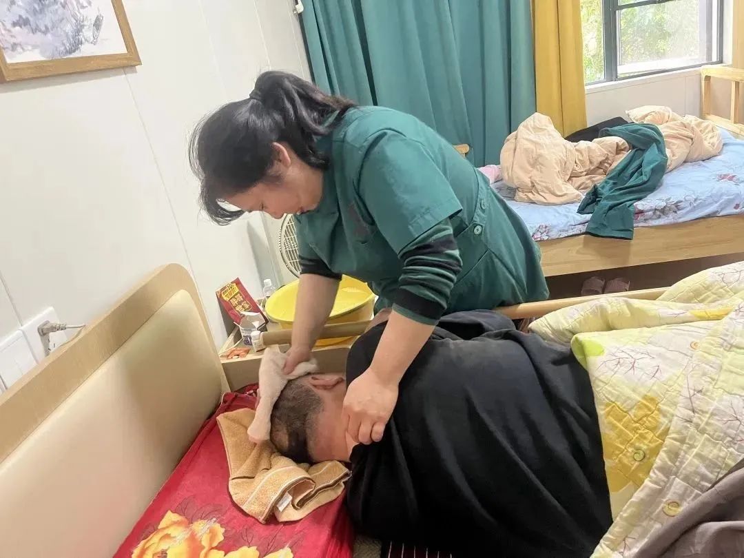 長期臥床的田叔叔敏感細膩,經(jīng)常感懷自己命運多舛,護理員為了開解他,從自己家拿來鮮花,放在他的窗臺,讓他心情愉悅。為了減輕他關節(jié)僵硬防止壓瘡,護理員們細致的給他翻身、保持皮膚潔凈減少刺激,醫(yī)生每日到房間查體、調(diào)整用藥和飲食。得知田叔叔想吃臘肉,護理員從自己家里蒸好土臘肉帶給他吃…